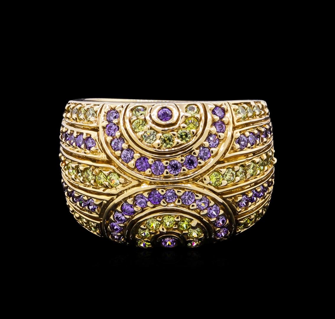 One ring featuring: 14KT yellow gold weighing 11.47 grams containing amethysts with a total weight of 0.48ct and peridots with a total weight of 0.46ct.