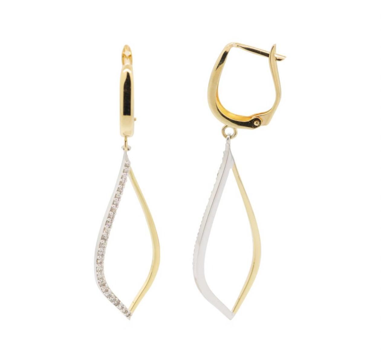 One pair of earrings featuring: 14KT yellow and white gold weighing 3.1 grams containing diamonds weighing 0.48ctw.