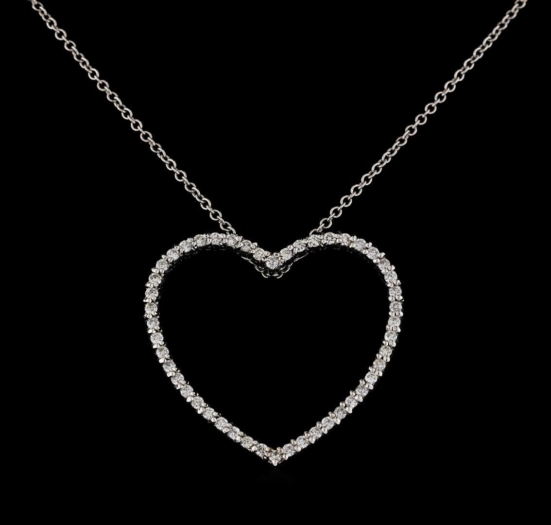 One Diamond Pendant With Chain featuring: 14KT White Gold with a total weight of 2.20 grams and 48 Diamonds with a total weight of 0.48ctw.