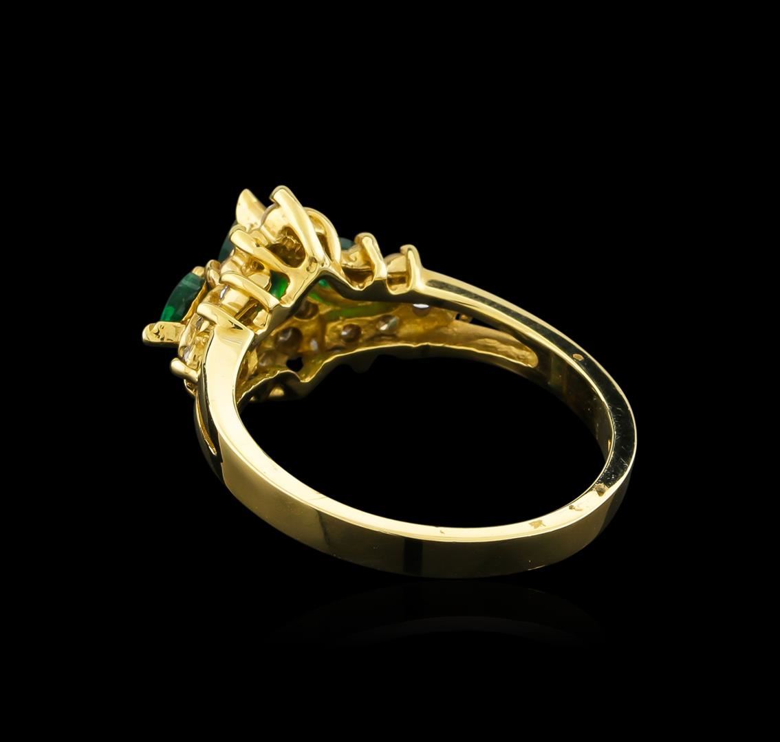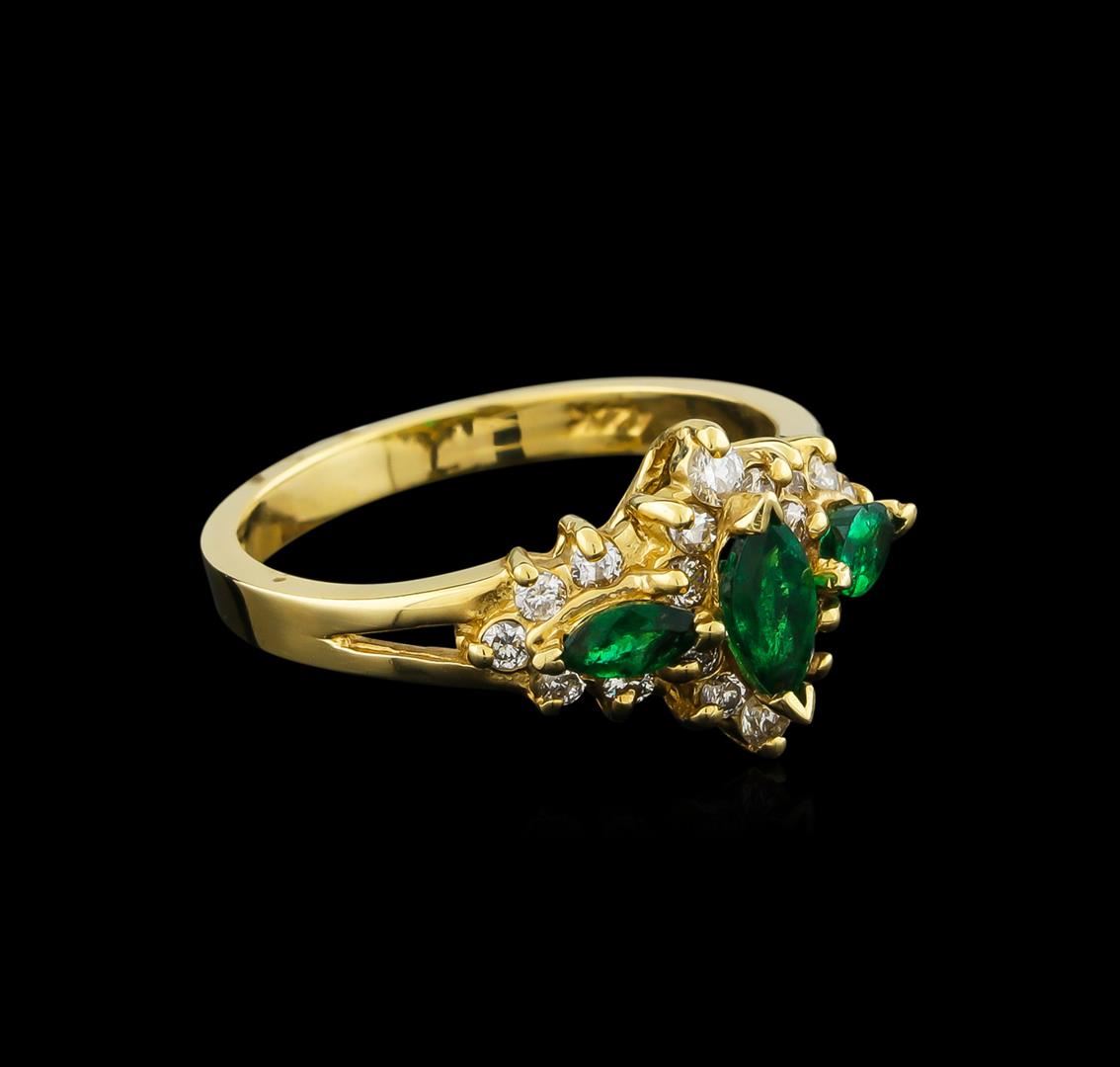 One ring featuring: 14KT yellow gold weighing 3.00 grams containing three emeralds with a total weight of 0.48ct and diamonds with a total weight of 0.35ct.