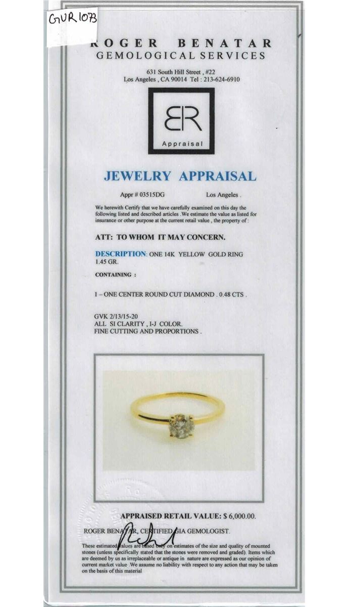 14K YELLOW GOLD NATURAL DIAMOND RING:1.45 GRAMS/DIAMOND:0.48CT//#GVR1073