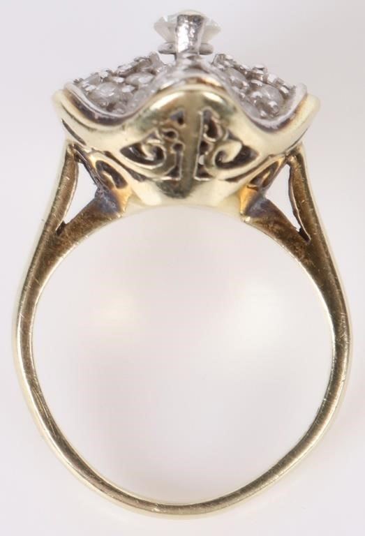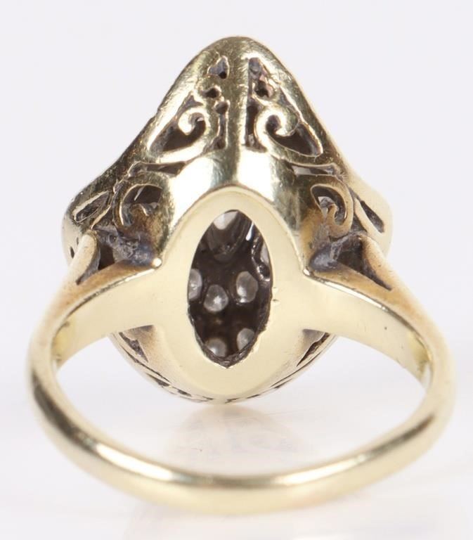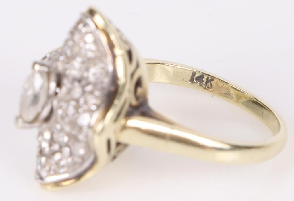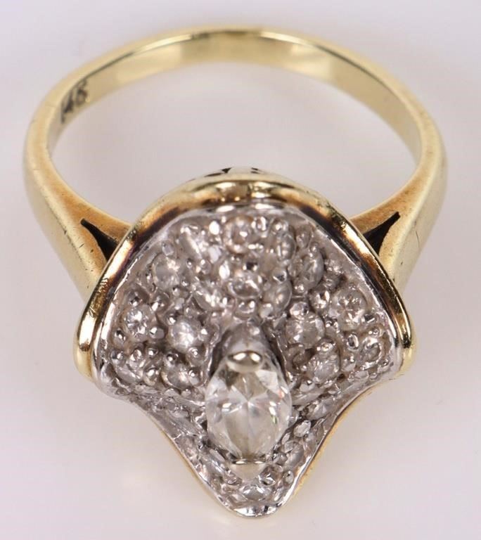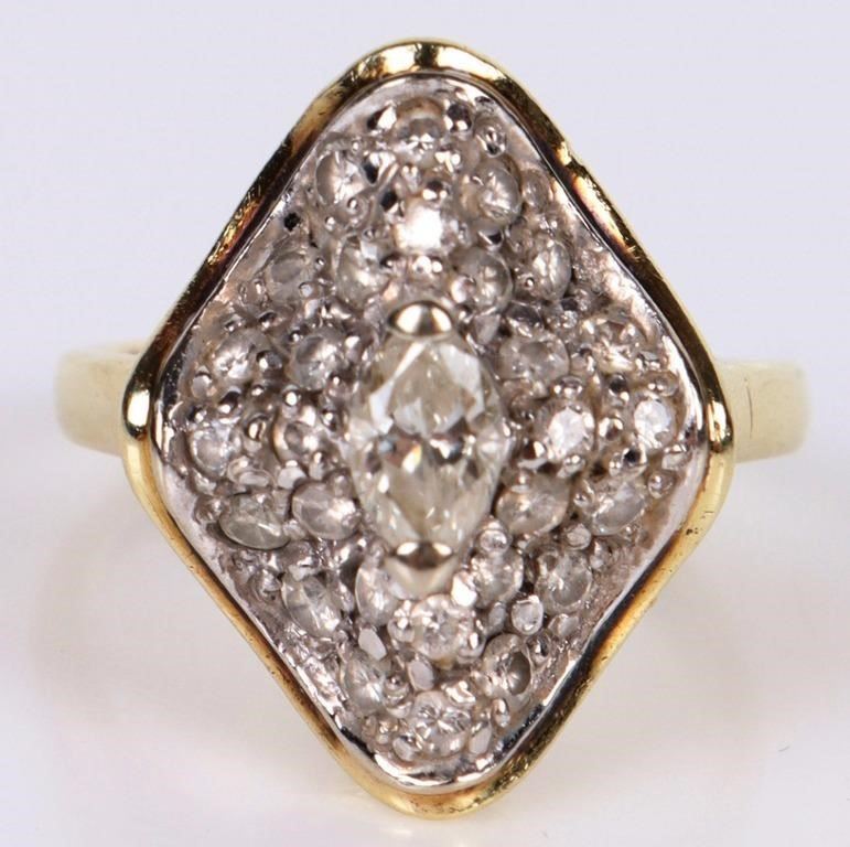 0.48CTW diamond 14k yellow gold ladies ring with one 0.20ct marquise center diamond, and twenty-eight 0.01ct round diamonds.