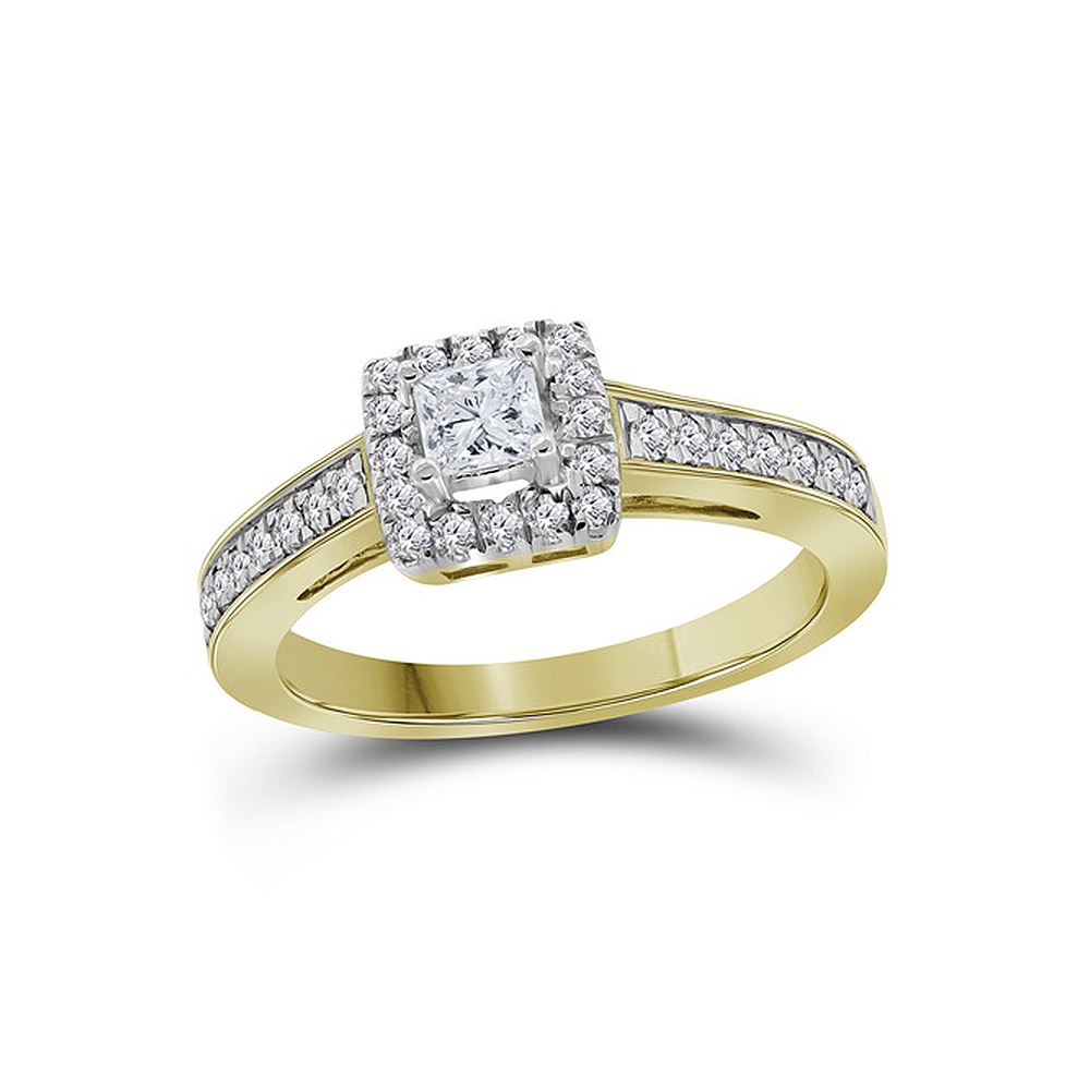 REF-69H9X ---- 0.49 CTW Princess Natural Diamond Solitaire Bridal Engagement Ring 14K Yellow Gold - SKU: GD73501