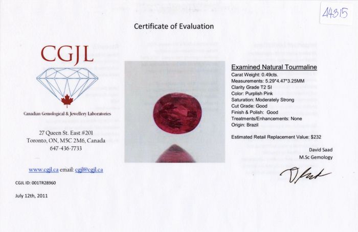 APPRAISALS & APPRAISAL ESTIMATES; WAR 5% LOOSE GEM GUARANTY