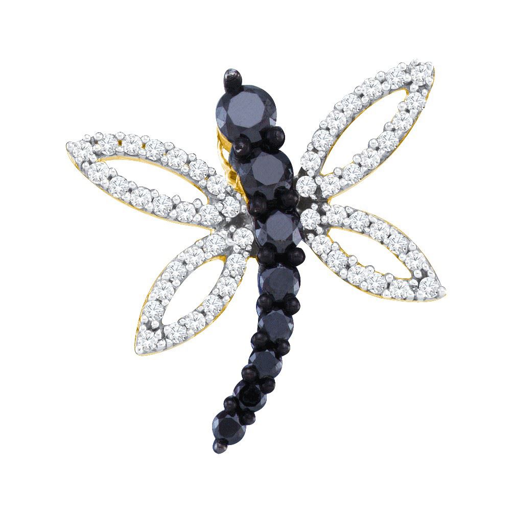 REF-40Y2V ---- 0.5 CTW Black Colored Diamond Dragonfly Insect Bug Flying Fine Pendant 10K Yellow Gold - SKU: GD65010