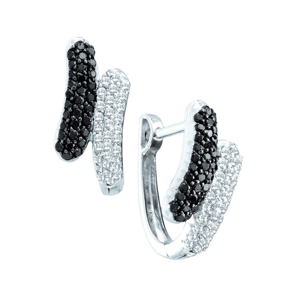 REF-55V9T ---- 0.5 CTW Black Colored Diamond Hoop Earrings 14K White Gold - SKU: GD51076