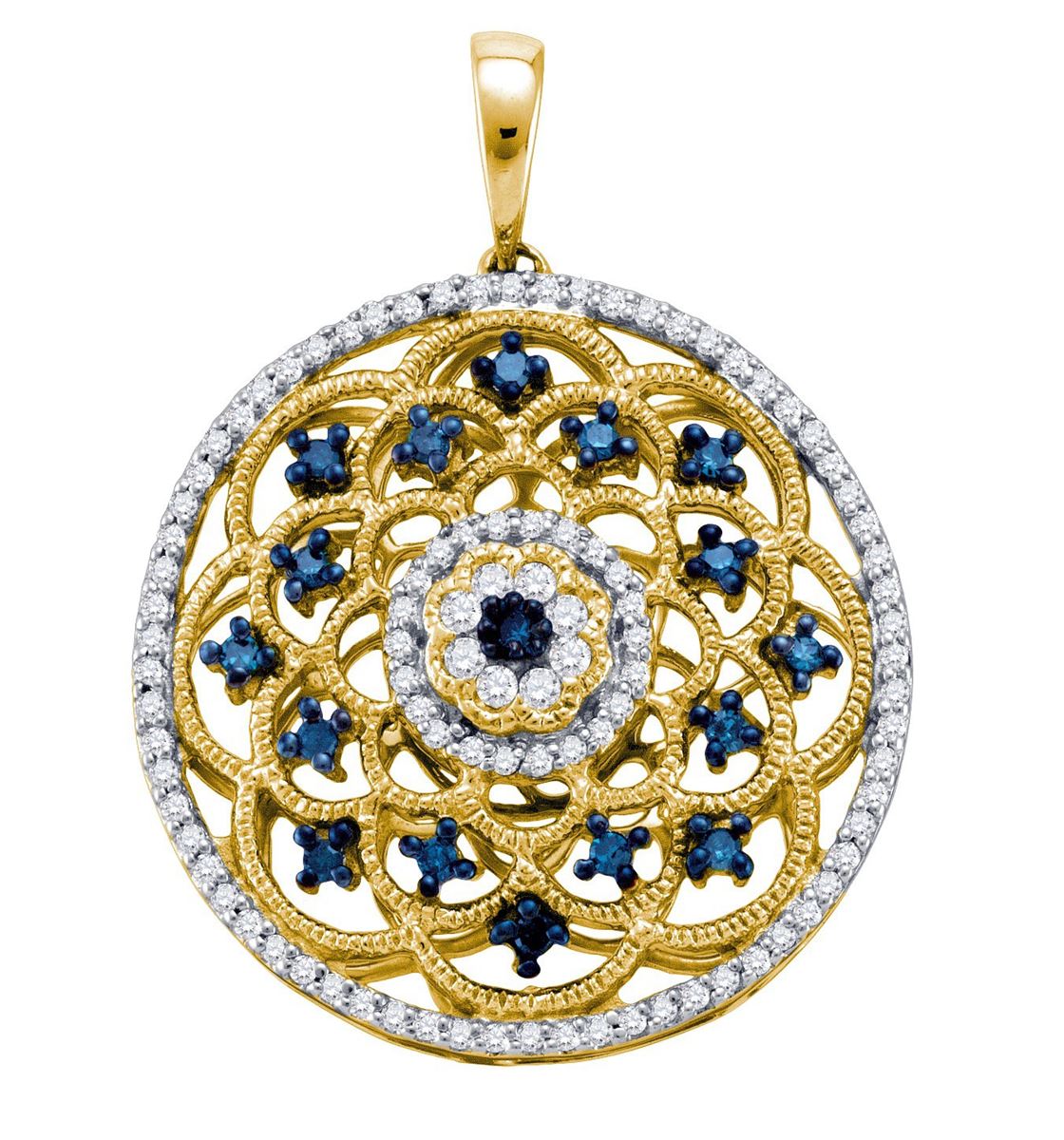 REF-59V8T ---- 0.5 CTW Blue Colored Diamond Circle Pendant 10K Yellow Gold - SKU: GD65874