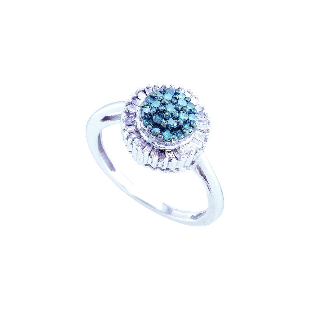 REF-29K9W ---- 0.5 CTW Blue Colored Diamond Cluster Ring 10K White Gold - SKU: GD58269