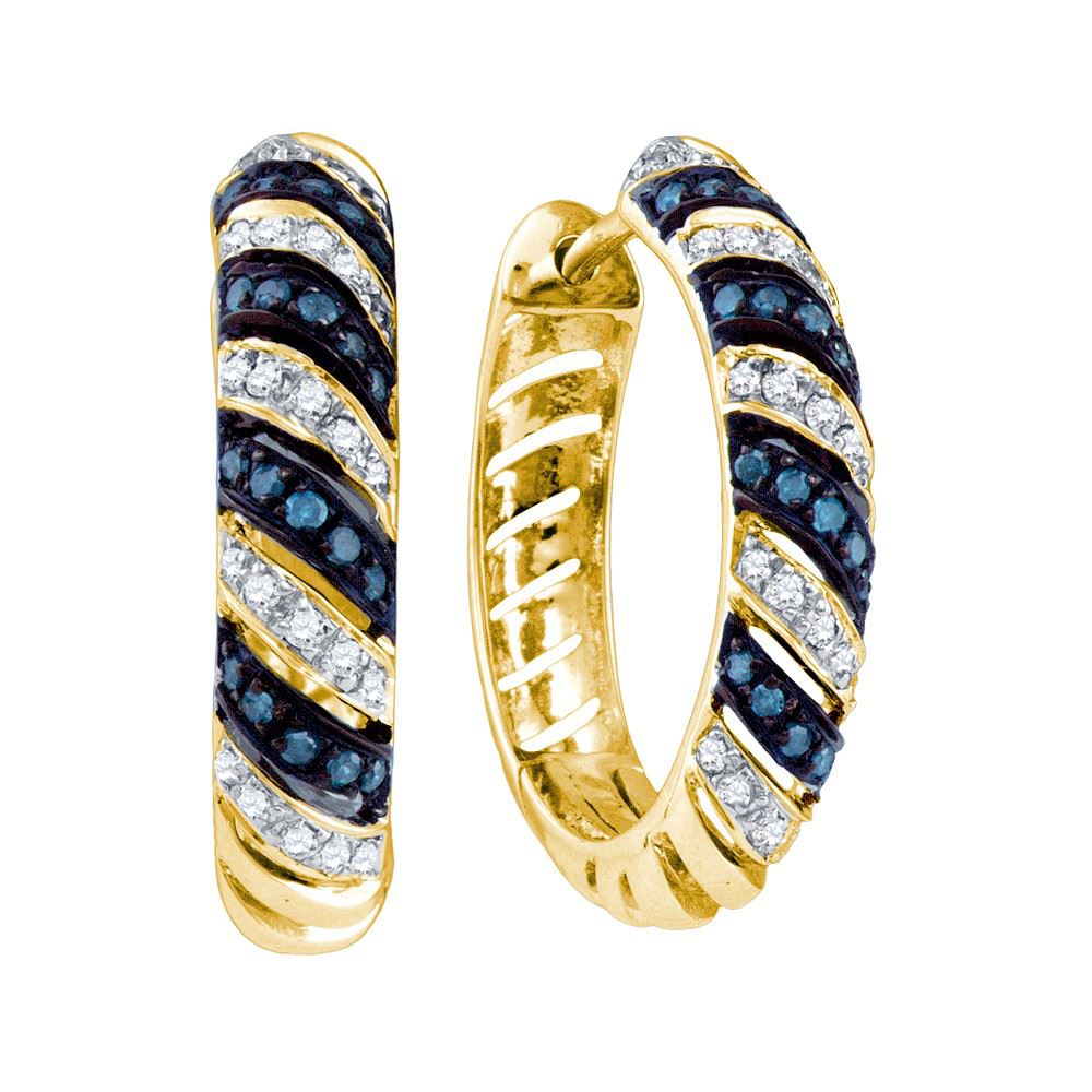 REF-85W9H ---- 0.5 CTW Blue Colored Diamond Horiztonal Stripe Lightweight Hoop Earrings 10K Yellow Gold - SKU: GD65963