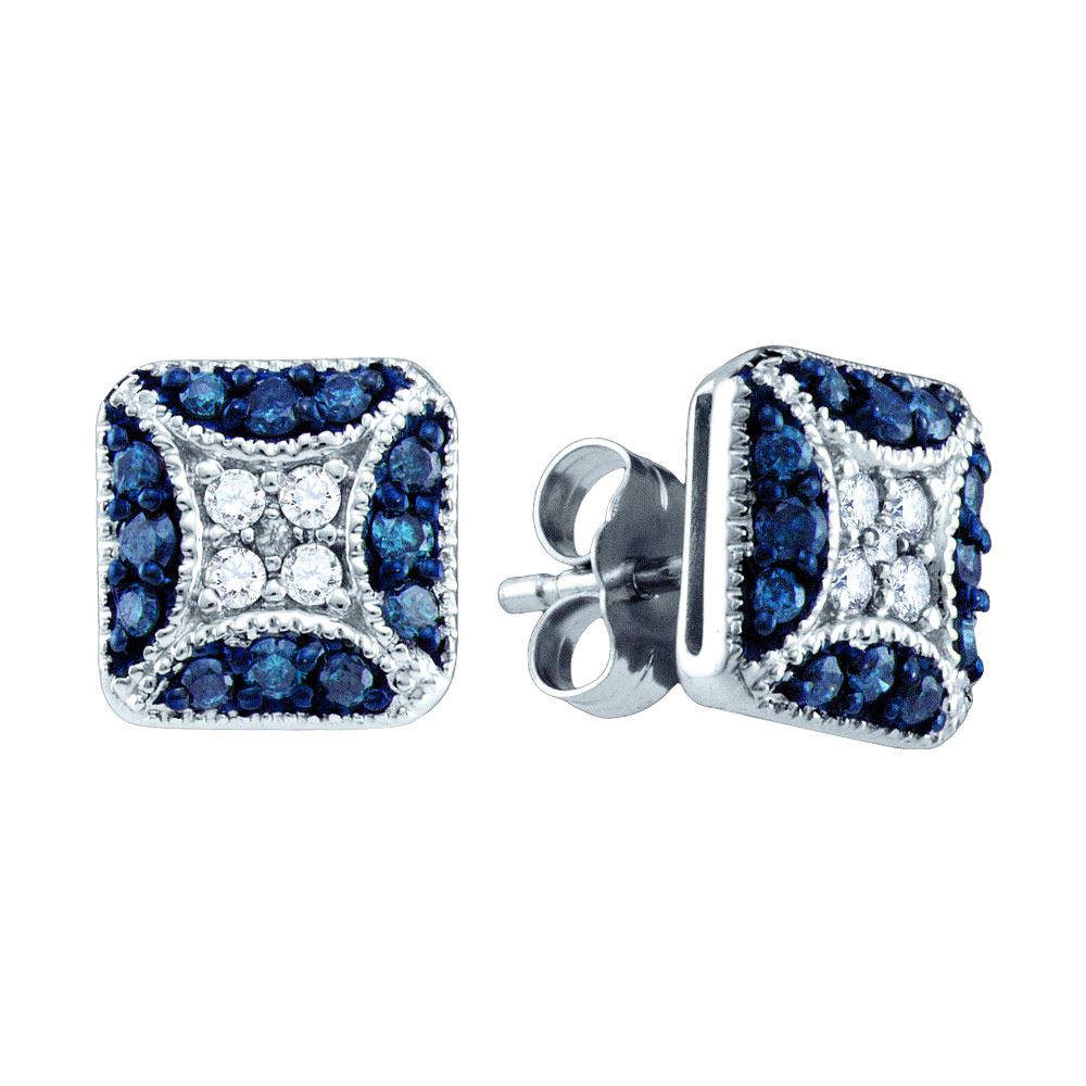 REF-43X9F ---- 0.5 CTW Blue Colored Diamond Square Cluster Earrings 10K White Gold - SKU: GD65830