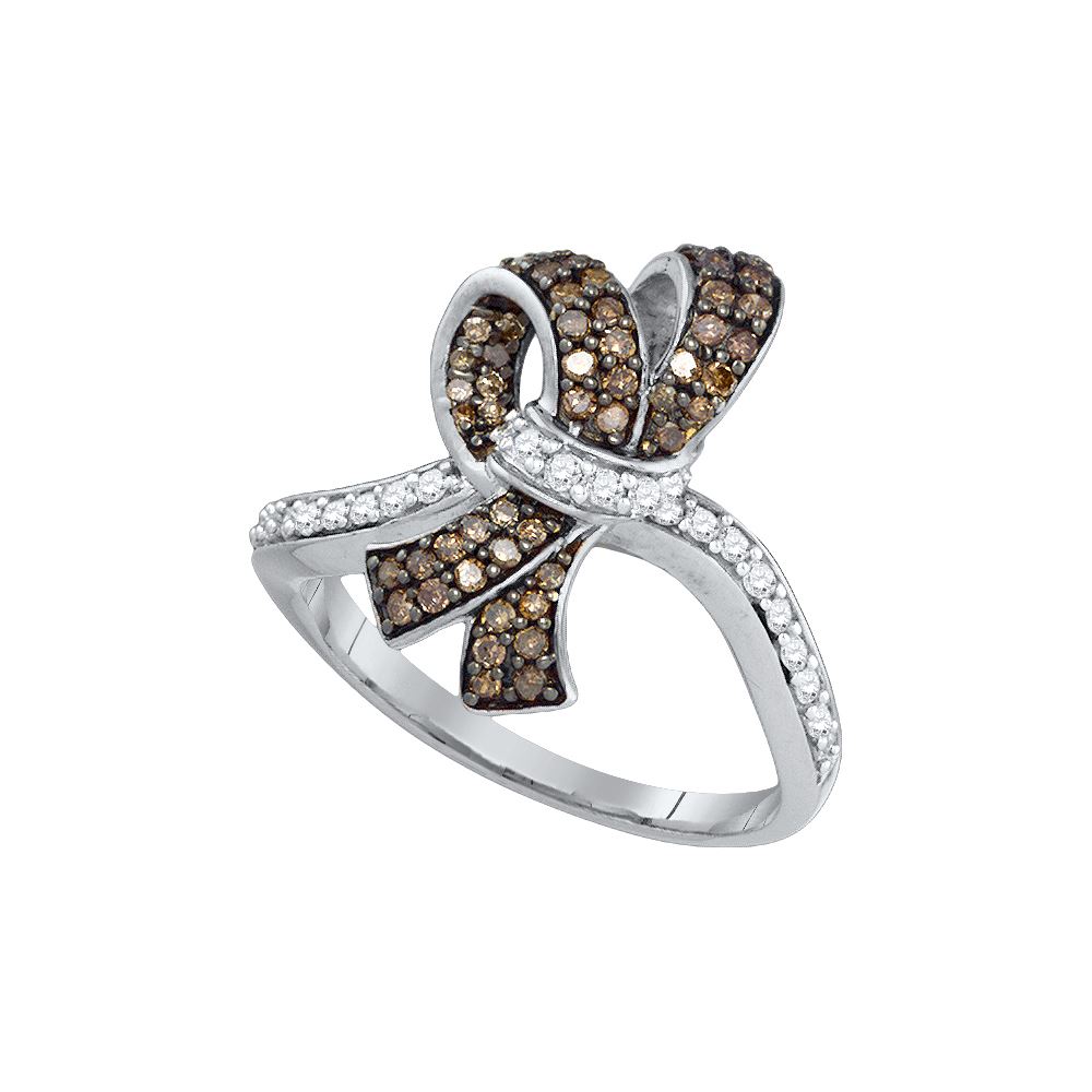 REF-45A9N ---- 0.5 CTW Cognac-brown Colored Diamond Cluster Bowtie Ribbon Ring 10K White Gold - SKU: GD72213
