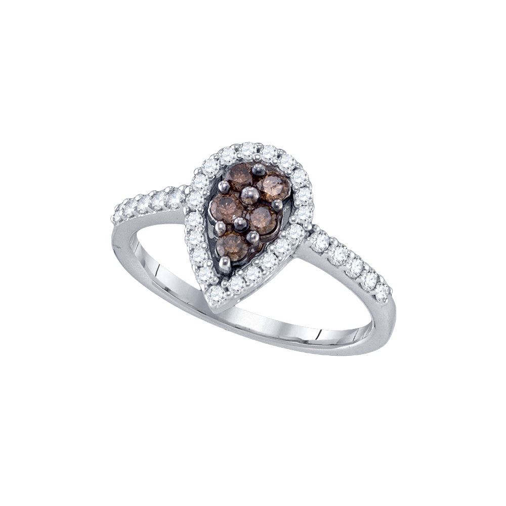 REF-40Y2V ---- 0.5 CTW Cognac-brown Colored Diamond Cluster Ring 10K White Gold - SKU: GD75975