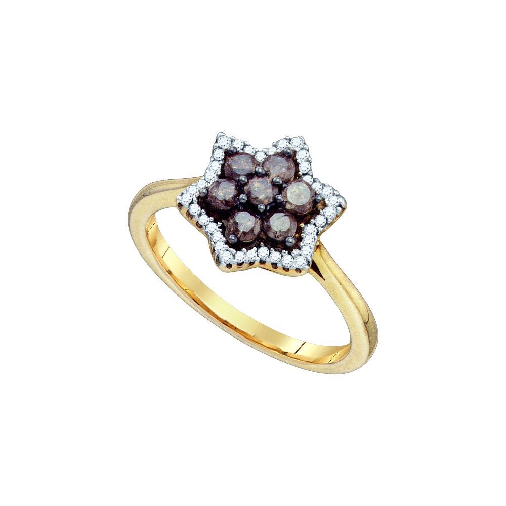 REF-40W2H ---- 0.5 CTW Cognac-brown Colored Diamond Cluster Ring 10K Yellow Gold - SKU: GD74873