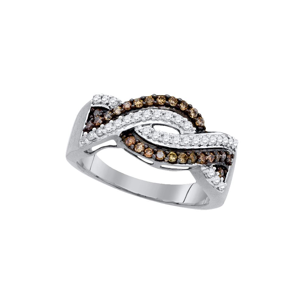 REF-40A2N ---- 0.5 CTW Cognac-brown Colored Diamond Crossover Band 10K White Gold - SKU: GD90439