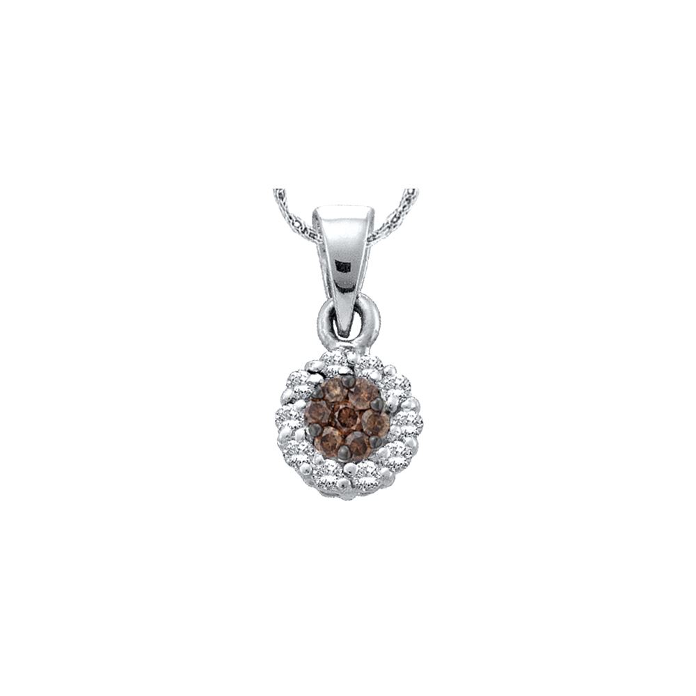 REF-43H9X ---- 0.5 CTW Cognac-brown Colored Diamond Flower Cluster Circle Pendant 14K White Gold - SKU: GD70845