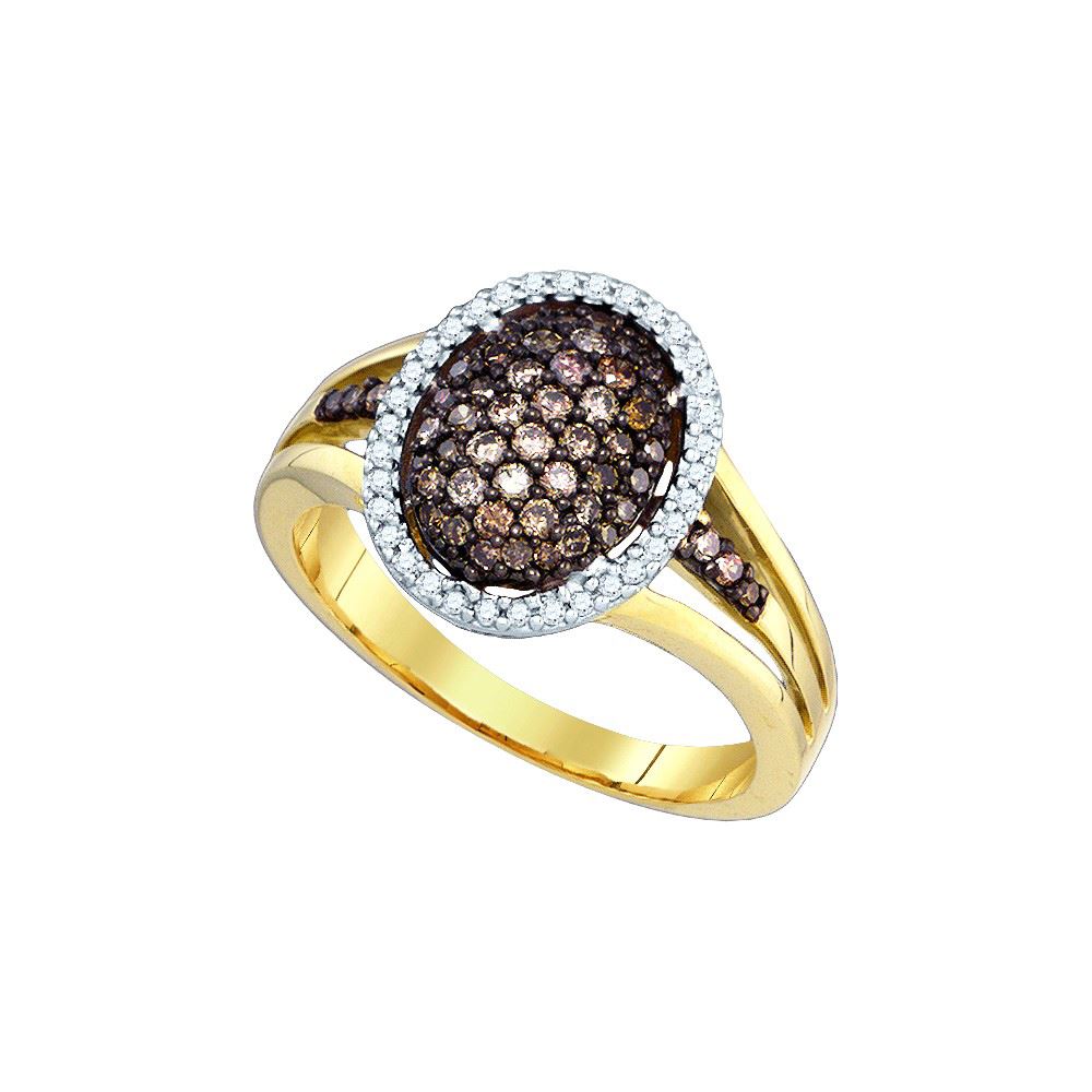 REF-50F2M ---- 0.5 CTW Cognac-brown Colored Diamond Oval Cluster Ring 10K Yellow Gold - SKU: GD81663