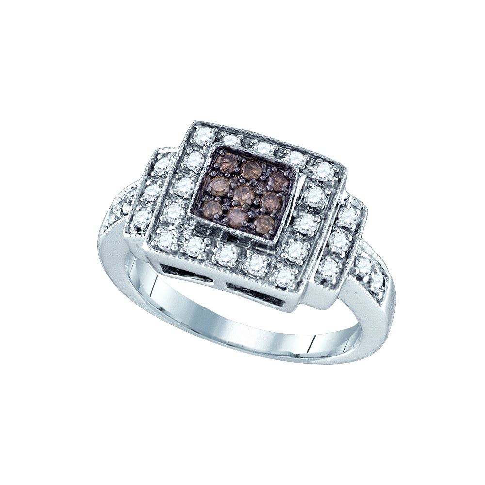 REF-61H9X ---- 0.5 CTW Cognac-brown Colored Diamond Square Cluster Ring 10K White Gold - SKU: GD75972