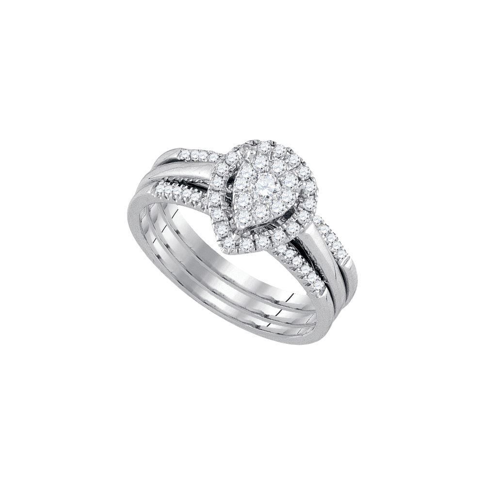 REF-94W9H ---- 0.5 CTW Diamond Teardrop Cluster 3-Piece Bridal Engagement Ring 14K White Gold - SKU: GD92826