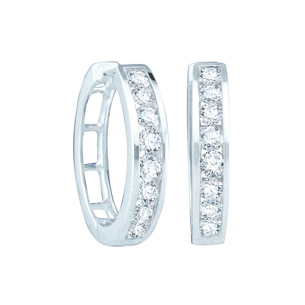 REF-75X2F ---- 0.5 CTW Natural Channel-set Diamond Fine Classic Traditional Hoop Earrings 14K White Gold - SKU: GD34307