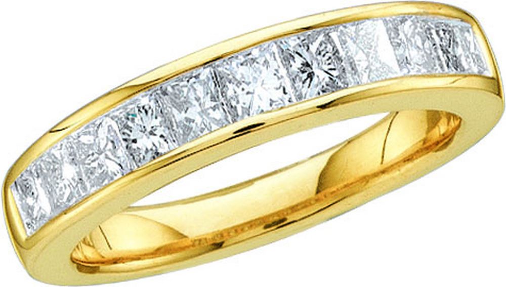 REF-63T9K ---- 0.5 CTW Natural Channel-set Princess Diamond Ladies 3mm Size 9 Band 14K Yellow Gold - SKU: GD30434