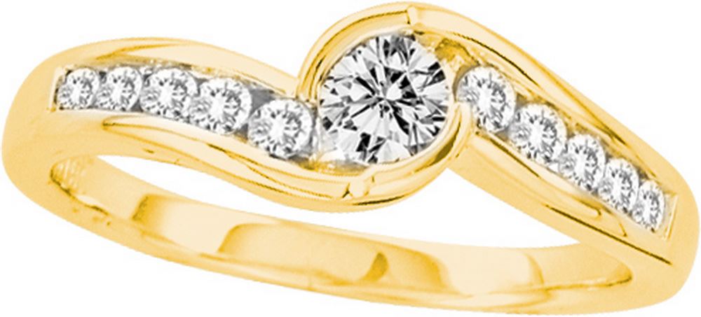 REF-105V9T ---- 0.5 CTW Natural Diamond Bezel-Set Bridal Engagement Ring 14K Yellow Gold - SKU: GD45589
