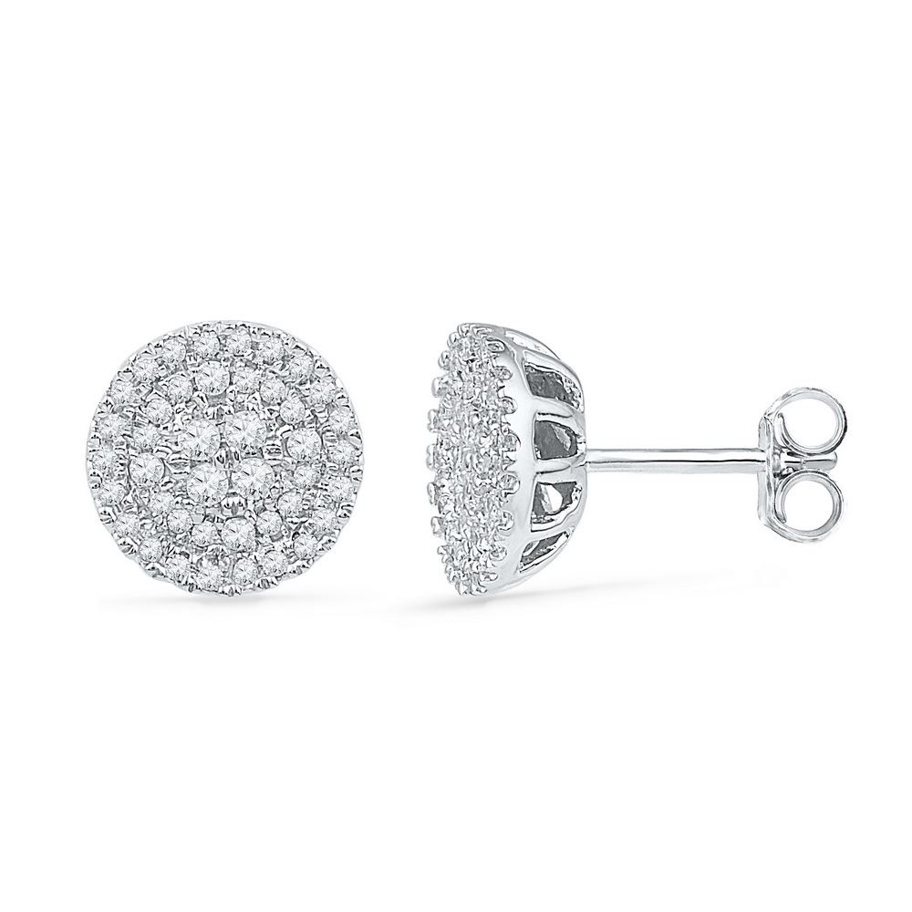 REF-41F8M ---- 0.5 CTW Natural Diamond Flower Cluster Earrings 10K White Gold - SKU: GD101936