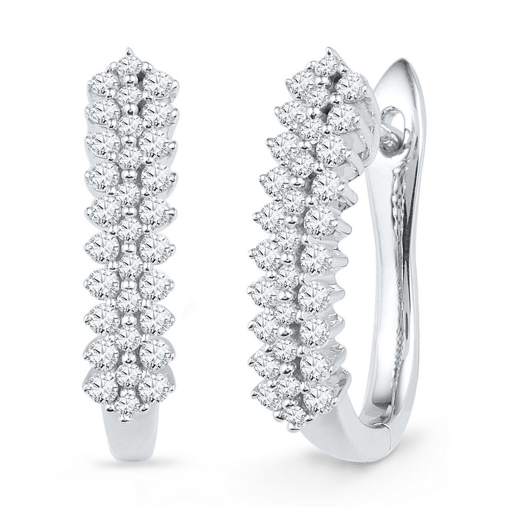 REF-63Y9V ---- 0.5 CTW Natural Diamond Oblong Hoop Earrings 10K White Gold - SKU: GD101940