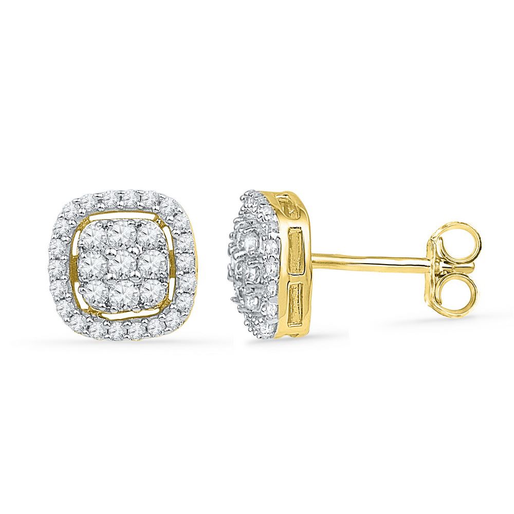 REF-45H9X ---- 0.5 CTW Natural Diamond Square Cluster Earrings 10K Yellow Gold - SKU: GD101933