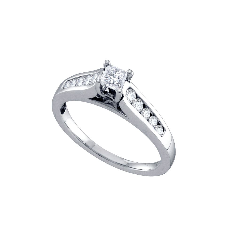 REF-95H9X ---- 0.5 CTW Natural Princess Diamond Solitaire Bridal Engagement Ring 14K White Gold - SKU: GD68714