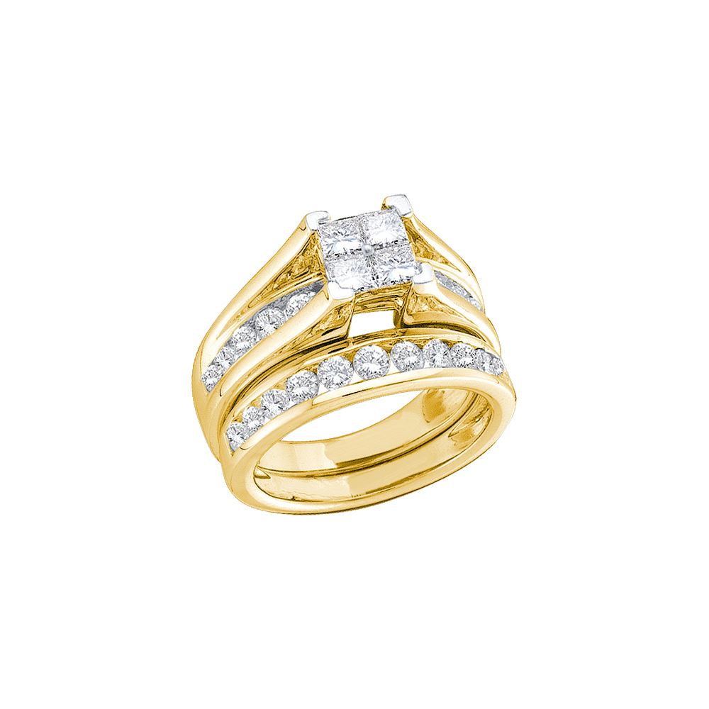 REF-54W9H ---- 0.5 CTW Natural Princess Invisible-set Diamond Bridal Engagement Ring 10K Yellow Gold - SKU: GD73855