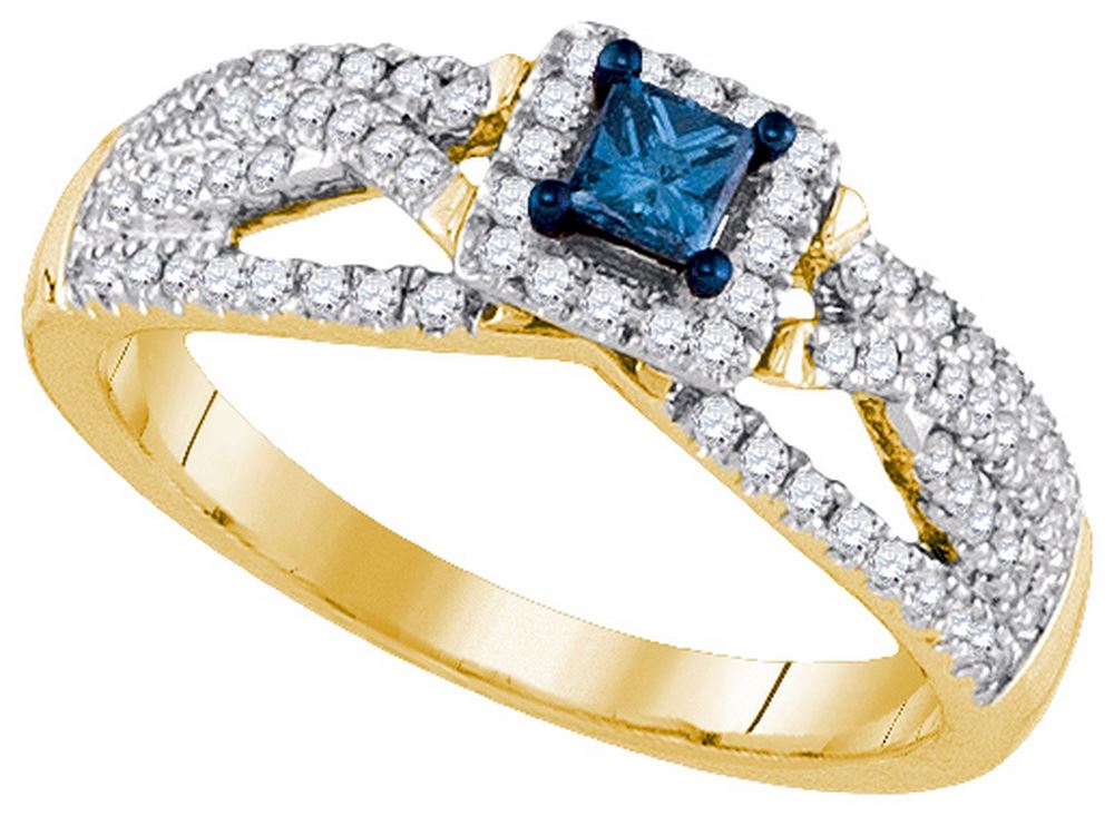 REF-95A9N ---- 0.5 CTW Princess Blue Colored Diamond Solitaire Bridal Engagement Ring 14K Yellow Gold - SKU: GD92742