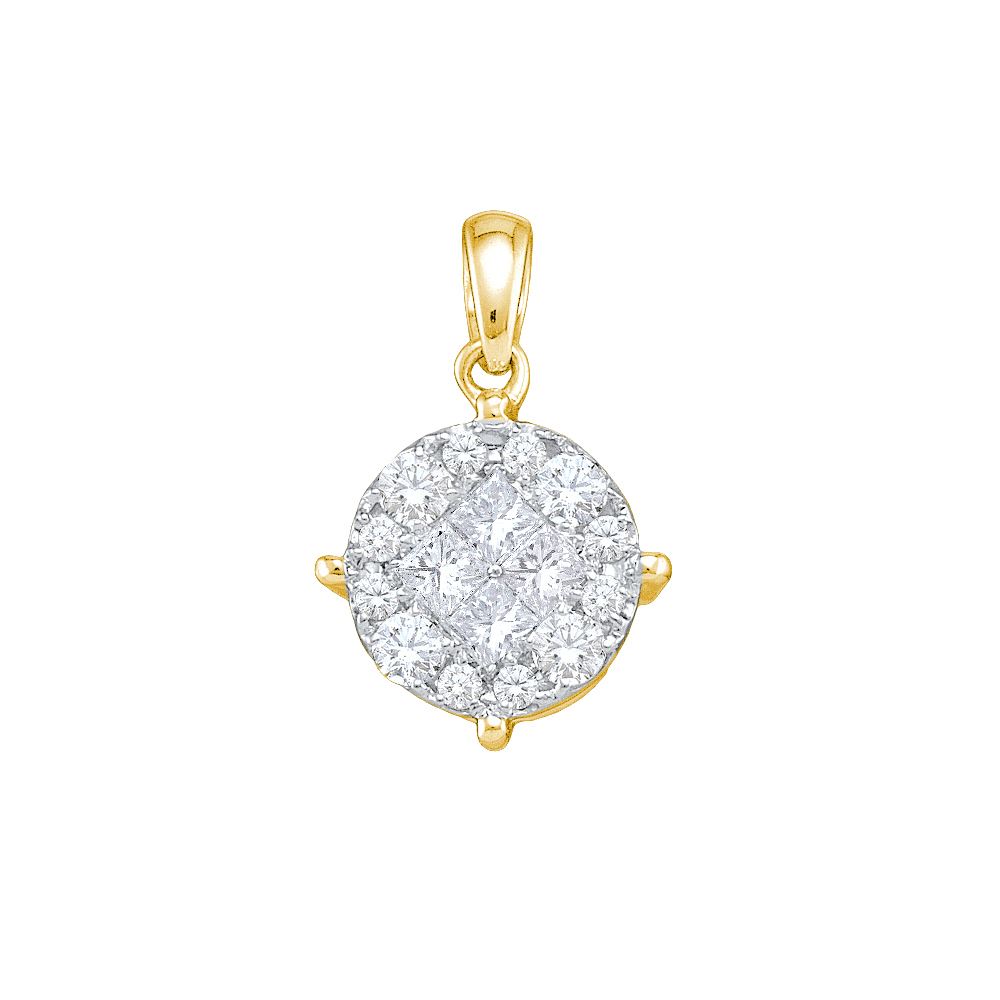 REF-59F8M ---- 0.5 CTW Princess Natural Diamond Soliel Cluster Pendant 14K Yellow Gold - SKU: GD48805