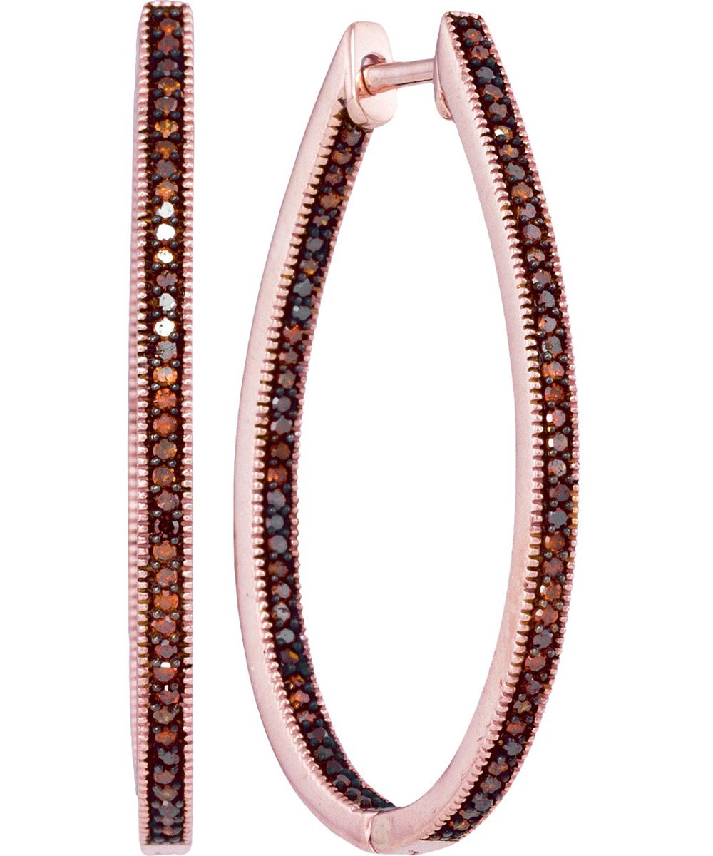 REF-79M9A ---- 0.5 CTW Red Colored Diamond Oval Hoop Earrings 10K Rose Gold - SKU: GD93537