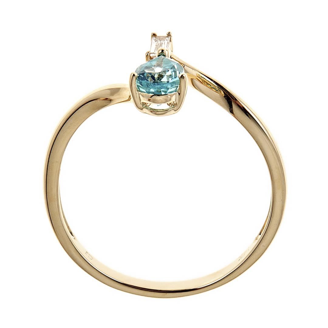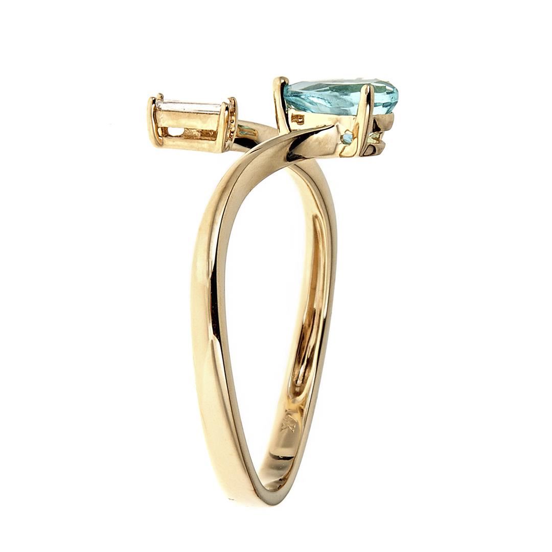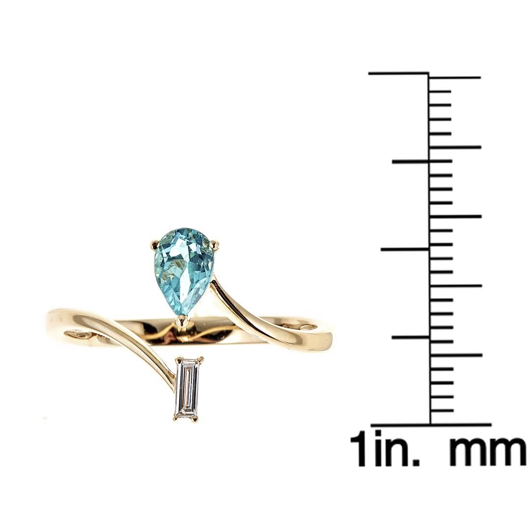 One ring featuring: 14KT yellow gold weighing 1.65 grams containing one pear cut apatite with a total weight of 0.5 ct and diamonds weighing a total of 0.05 ctw.