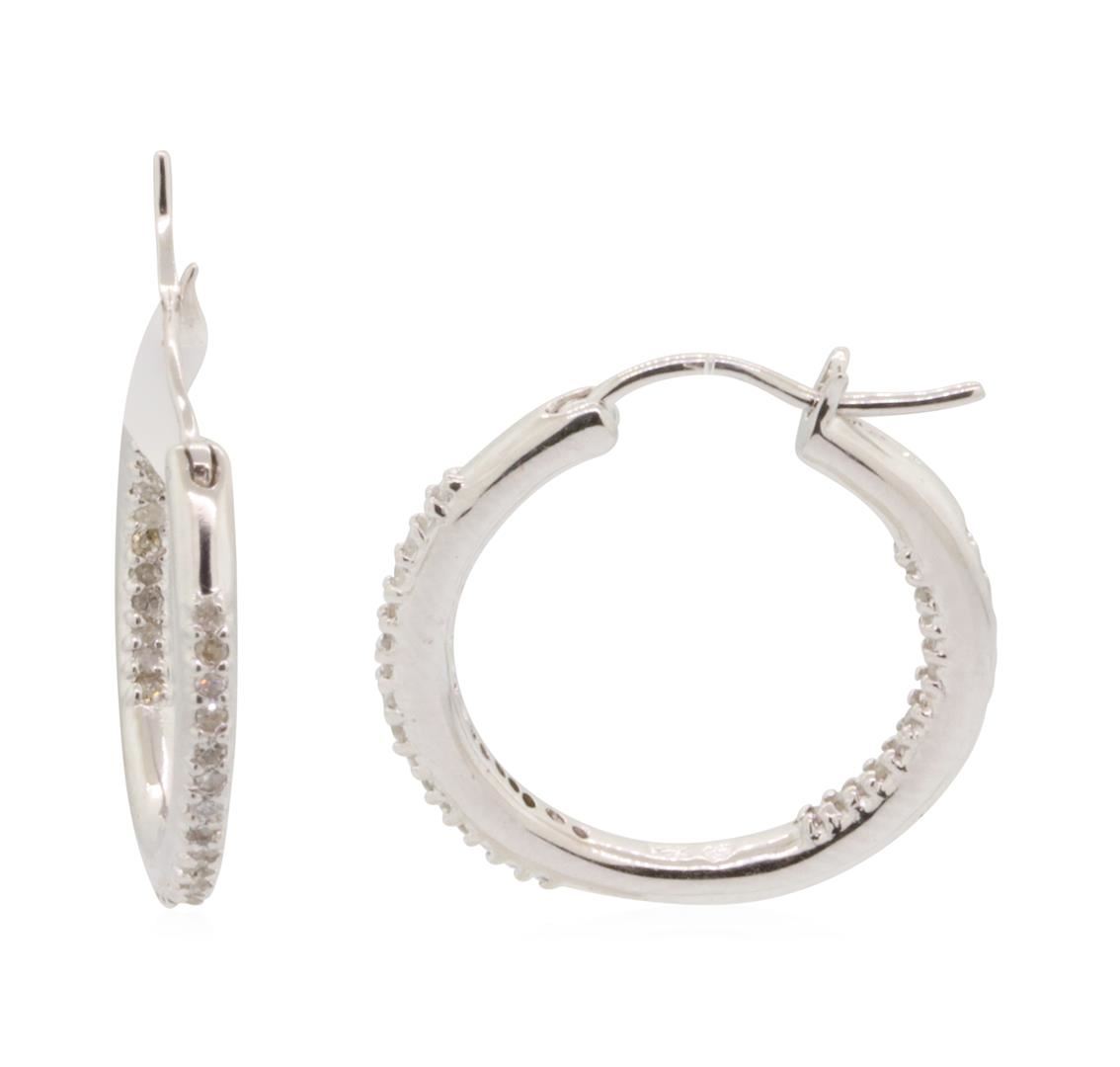One pair of hoop earrings featuring: 14KT white gold weighing 5.9 grams containing diamonds weighing 0.50ctw.