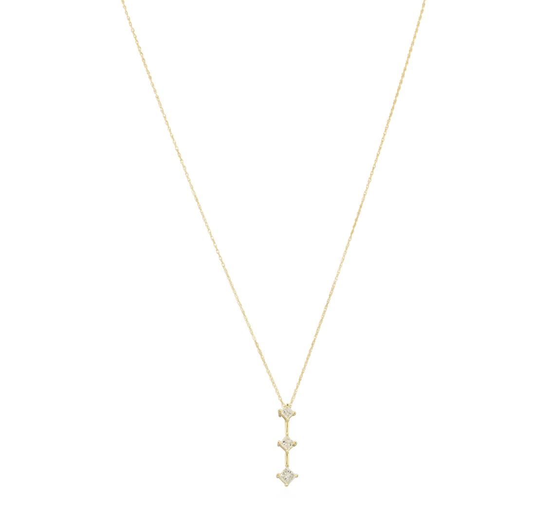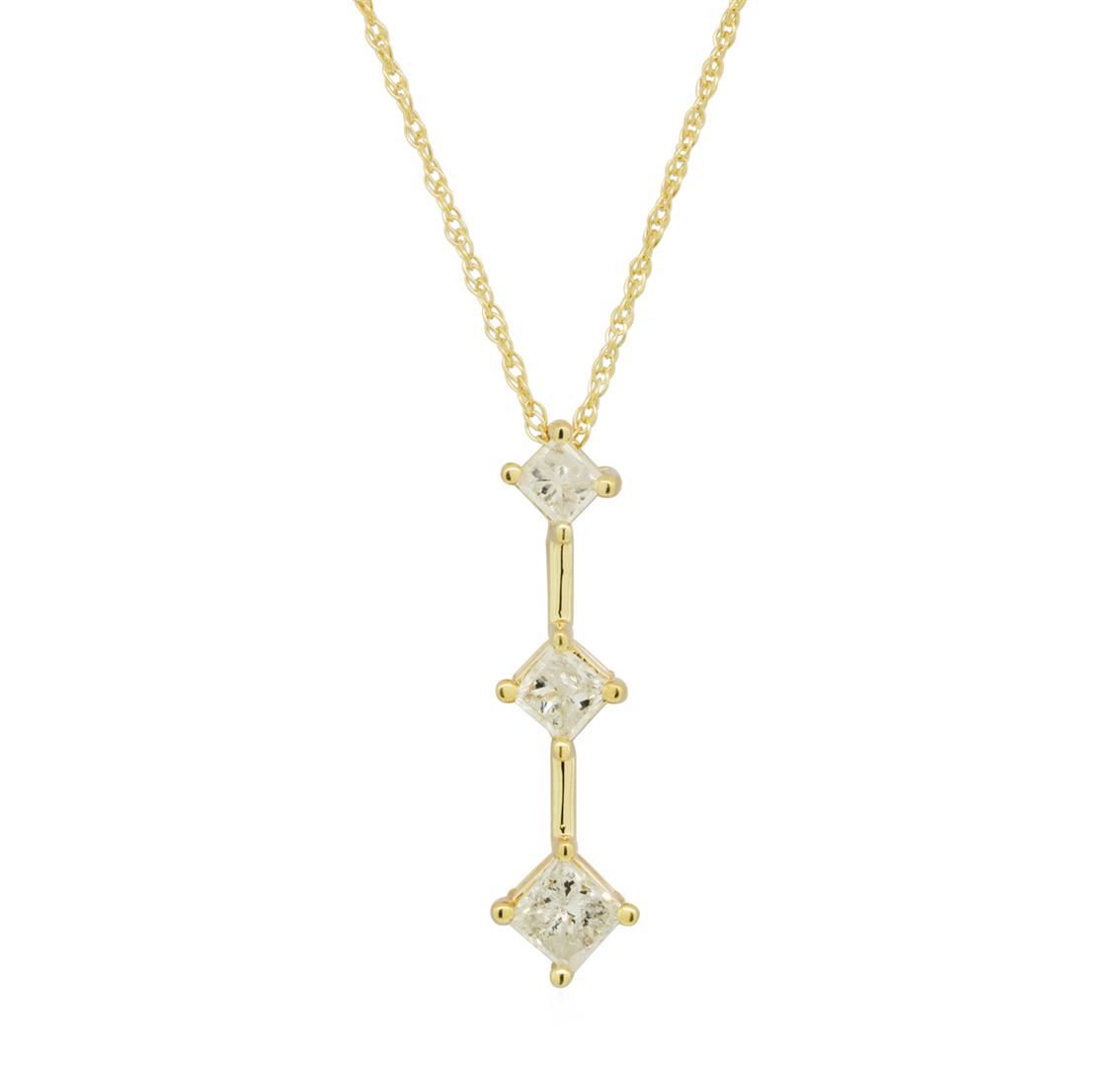 One lady's pendant with chain featuring: 14KT yellow gold weighing 1.8 grams containing diamonds weighing 0.50ctw. The pendant has a chain measuring approximately eighteen inches in length.