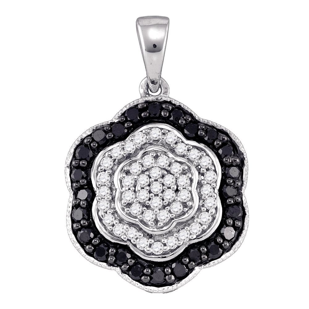 REF-22N4F- SKU: GD76095 ---- 0.50 CTWBlack Color Diamond Hexagon Cluster Pendant 10KT White Gold