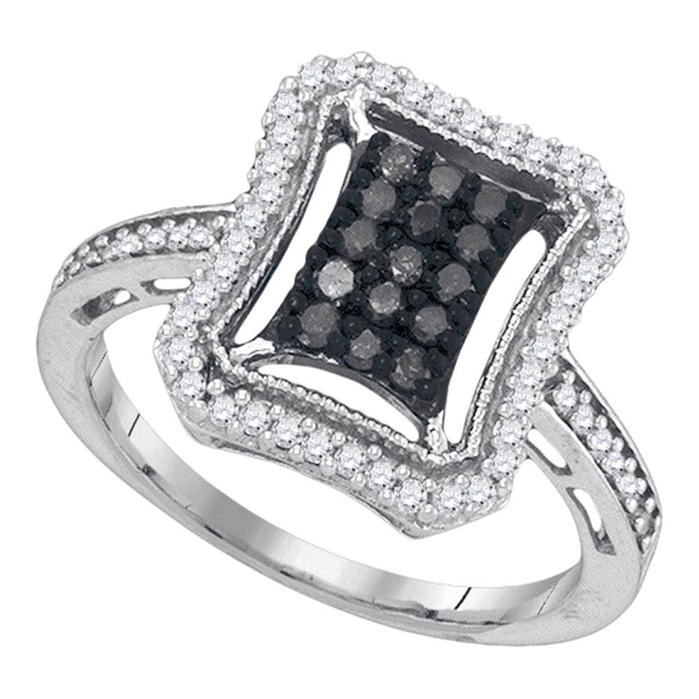 REF-30K2W- SKU: GD89394 ---- 0.50 CTWBlack Color Diamond Rectangle Cluster Ring 10KT White Gold