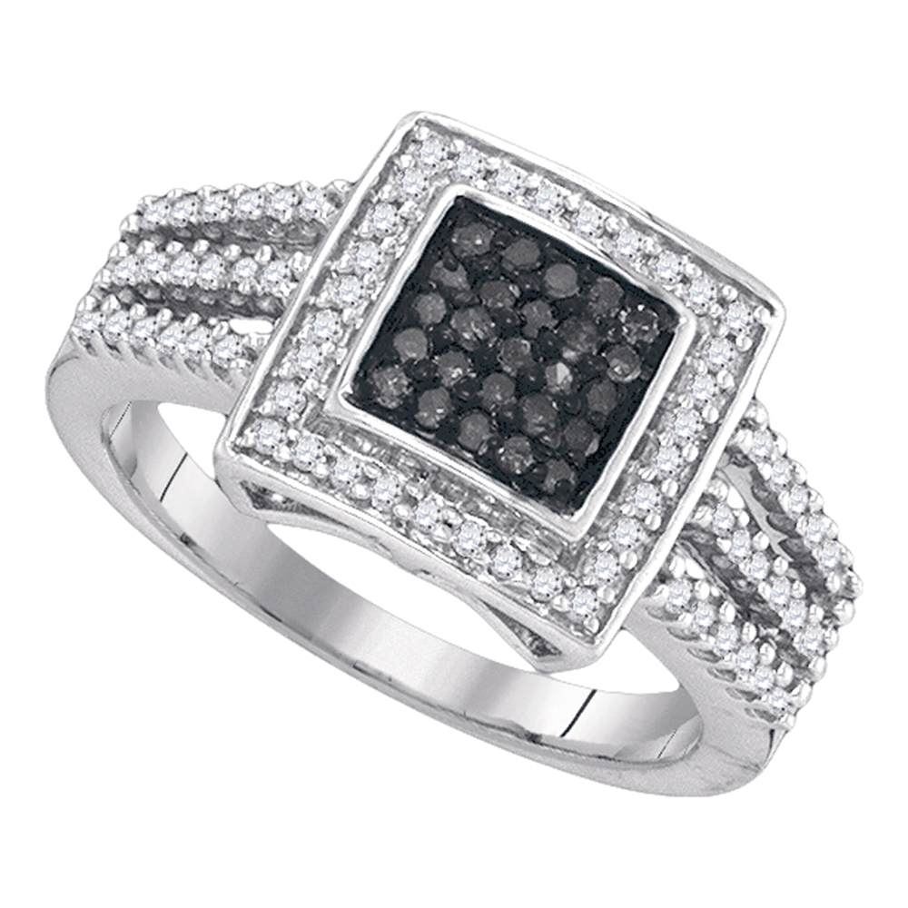 REF-37M5H- SKU: GD89508 ---- 0.50 CTWBlack Color Diamond Square Cluster Ring 10KT White Gold