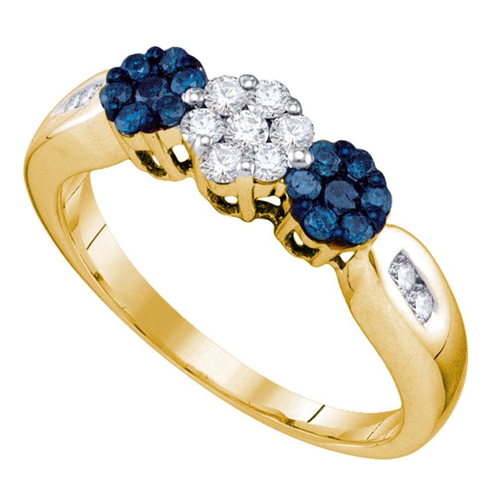 REF-34H4M- SKU: GD66145 ---- 0.50 CTWBlue Color Diamond Cluster Ring 10KT Yellow Gold
