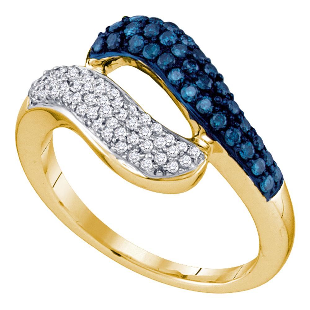 REF-37X5Y- SKU: GD65826 ---- 0.50 CTWBlue Color Diamond Cocktail Ring 10KT Yellow Gold