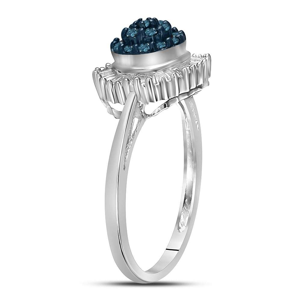 REF-22H4M- SKU: GD58269 ---- 0.50 CTWBlue Color Diamond Framed Cluster Ring 10KT White Gold