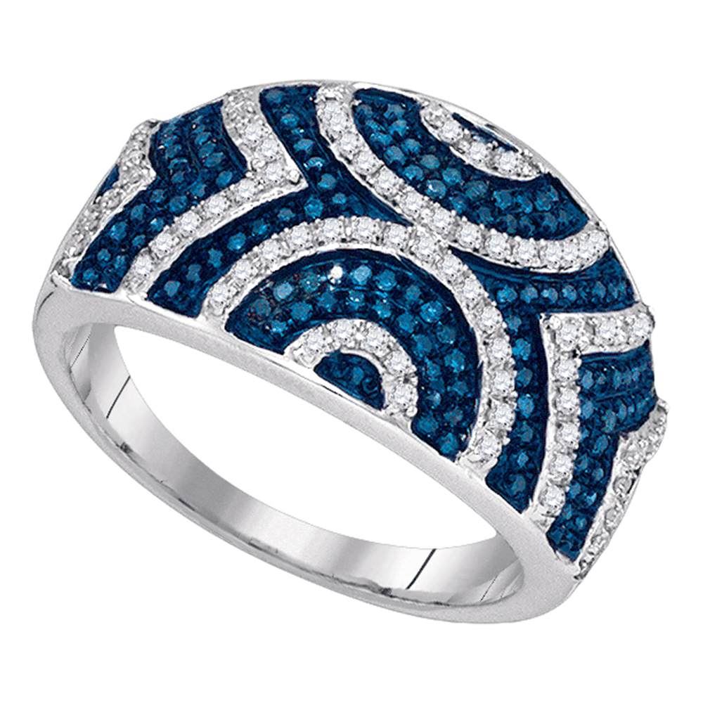 REF-37H5M- SKU: GD89360 ---- 0.50 CTWBlue Color Diamond Geometric Ring 10KT White Gold