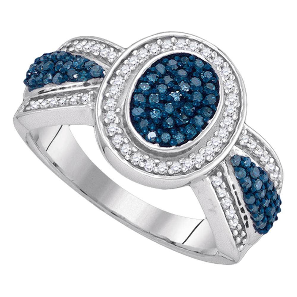 REF-37M5H- SKU: GD89396 ---- 0.50 CTWBlue Color Diamond Oval Cluster Ring 10KT White Gold