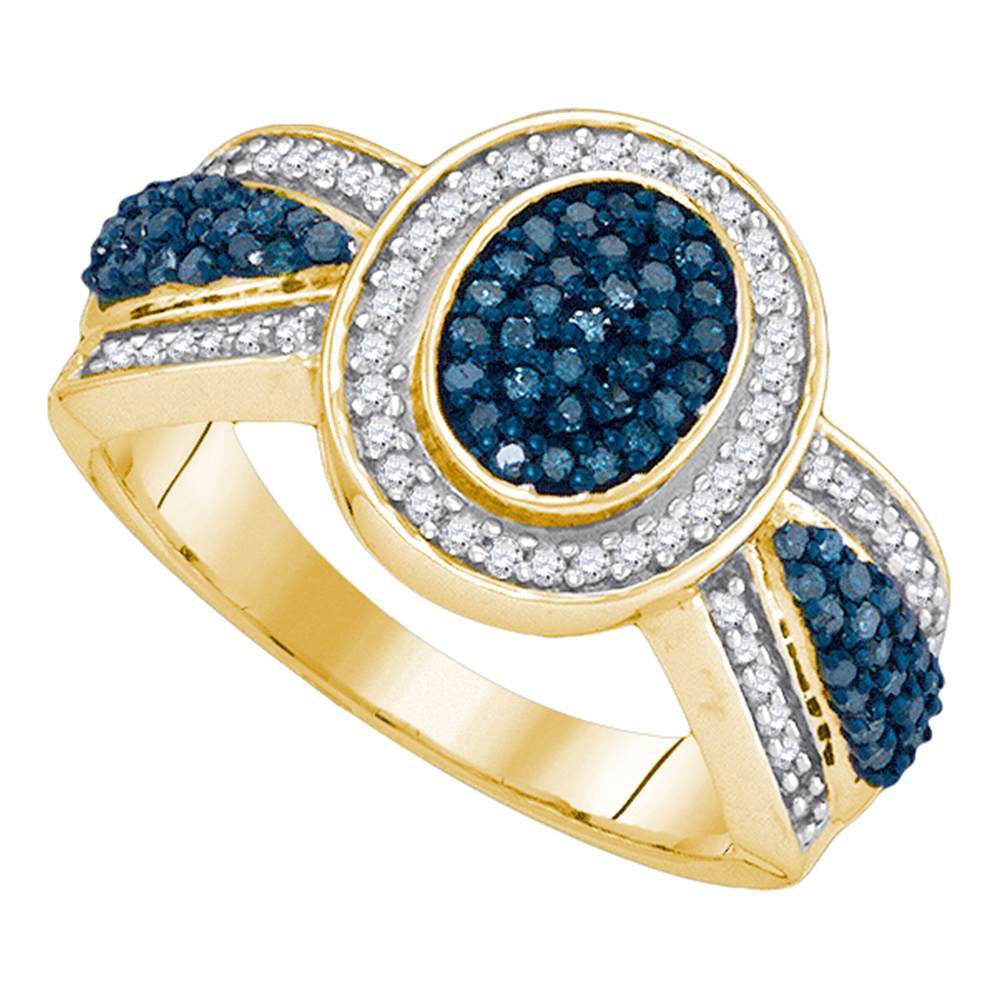 REF-37H5M- SKU: GD89575 ---- 0.50 CTWBlue Color Diamond Oval Cluster Ring 10KT Yellow Gold