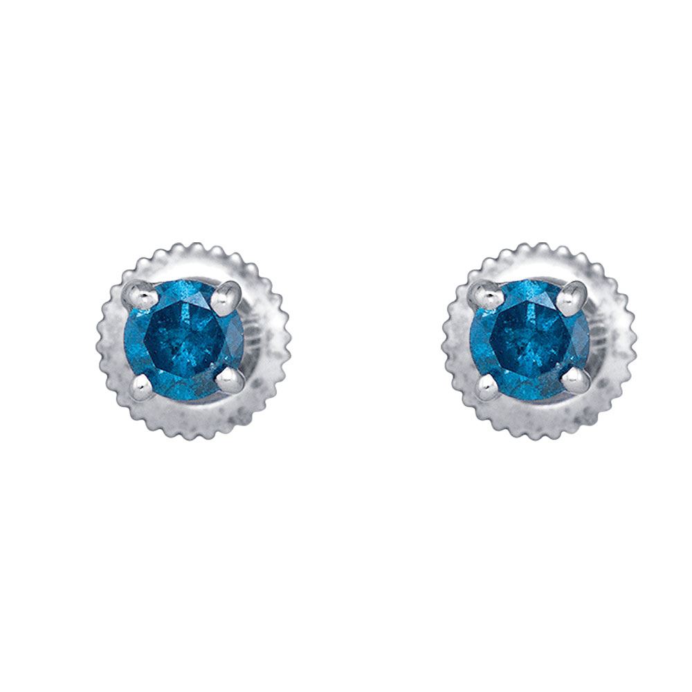 REF-26H9M- SKU: GD74804 ---- 0.50 CTWBlue Color Diamond Solitaire Screwback Stud Earrings 10KT White Gold