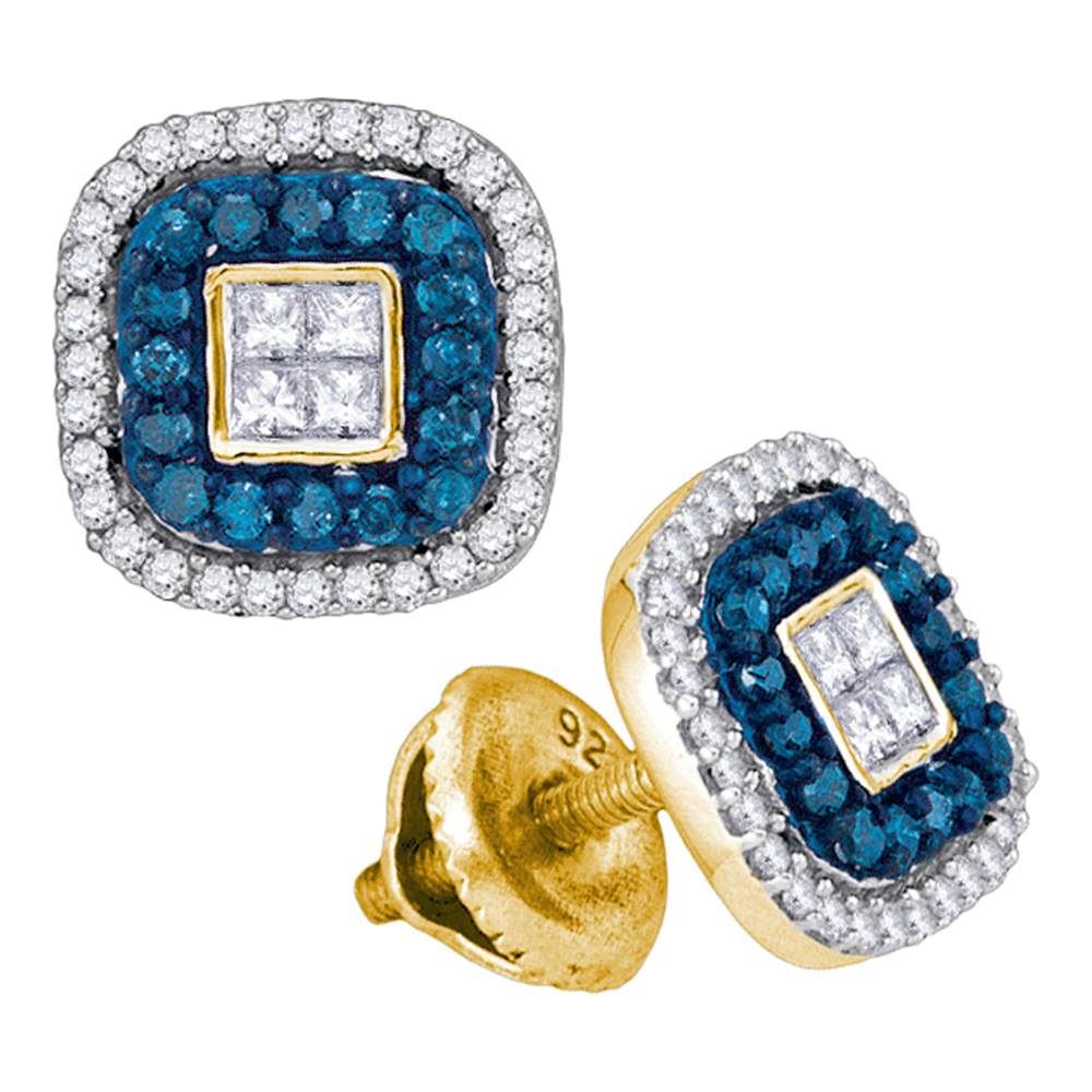 REF-30X2Y- SKU: GD89154 ---- 0.50 CTWBlue Color Diamond Square Cluster Earrings 10KT Yellow Gold
