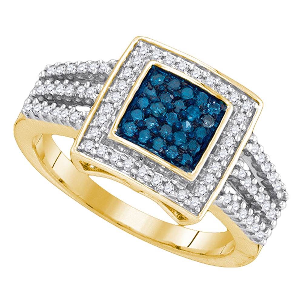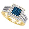 REF-37F5N- SKU: GD89566 ---- 0.50 CTWBlue Color Diamond Square Cluster Open Shank Ring 10KT Yellow Gold