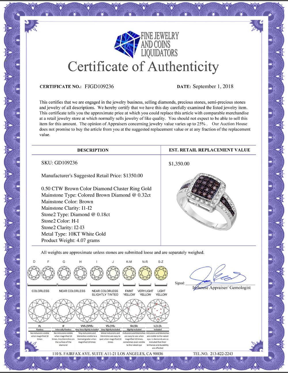 REF-34F4N- SKU: GD109236 ---- 0.50 CTWBrown Color Diamond Cluster Ring 10KT White Gold