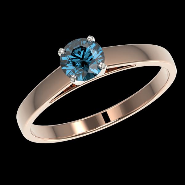 0.50 CTW Certified Intense Blue SI Diamond Solitaire Engagement Ring 10K Rose Gold ---- Luxury Designer Brand Ring Appraised Retail Price at $3,650 ---- SKU Number US32959 10k Rose gold Ring Size is 7, Ring measuring approx. Uniform, weighing in total approx. 2.6 grams. Made in the USA and is stamped 10k, Main stone 0.50 carat total weight containing 1 pieces of Intense Fancy Blue color with SI quality Round shape cut Diamond , Stone #2 carat total weight containing pieces of color with quality shape cut